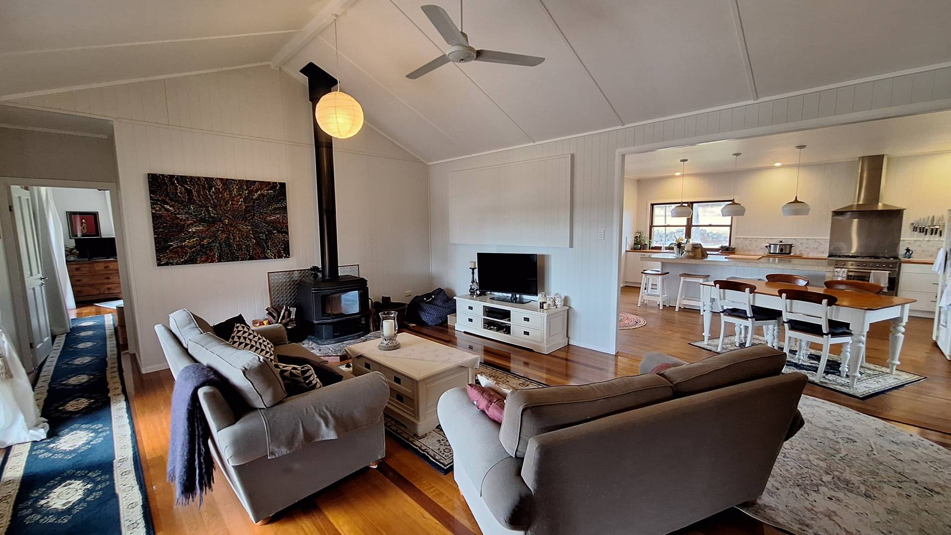 House 2 - 934 Mt Tully Rd. Similar style of home as house 1 with 3 large bedrooms, open kitchen and dining room, separate lounge, wood heating along with reverse cycle air conditioning and 2 separate deck areas facing East and North East. Additional self contained cottage with bedroom, bathroom and kitchen.
