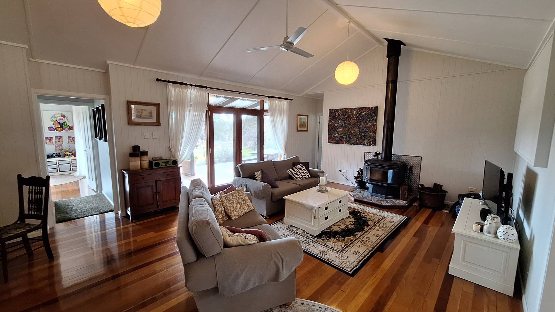 Separate lounge room with wood fired heating, 3 large bedrooms all opening out to North facing verandahs with the main bedroom having an ensuite while a separate kids play room has sink and storage. 12m x6m colorbond shed with an additional 6m x 8m carport offering good storage and workshop space.