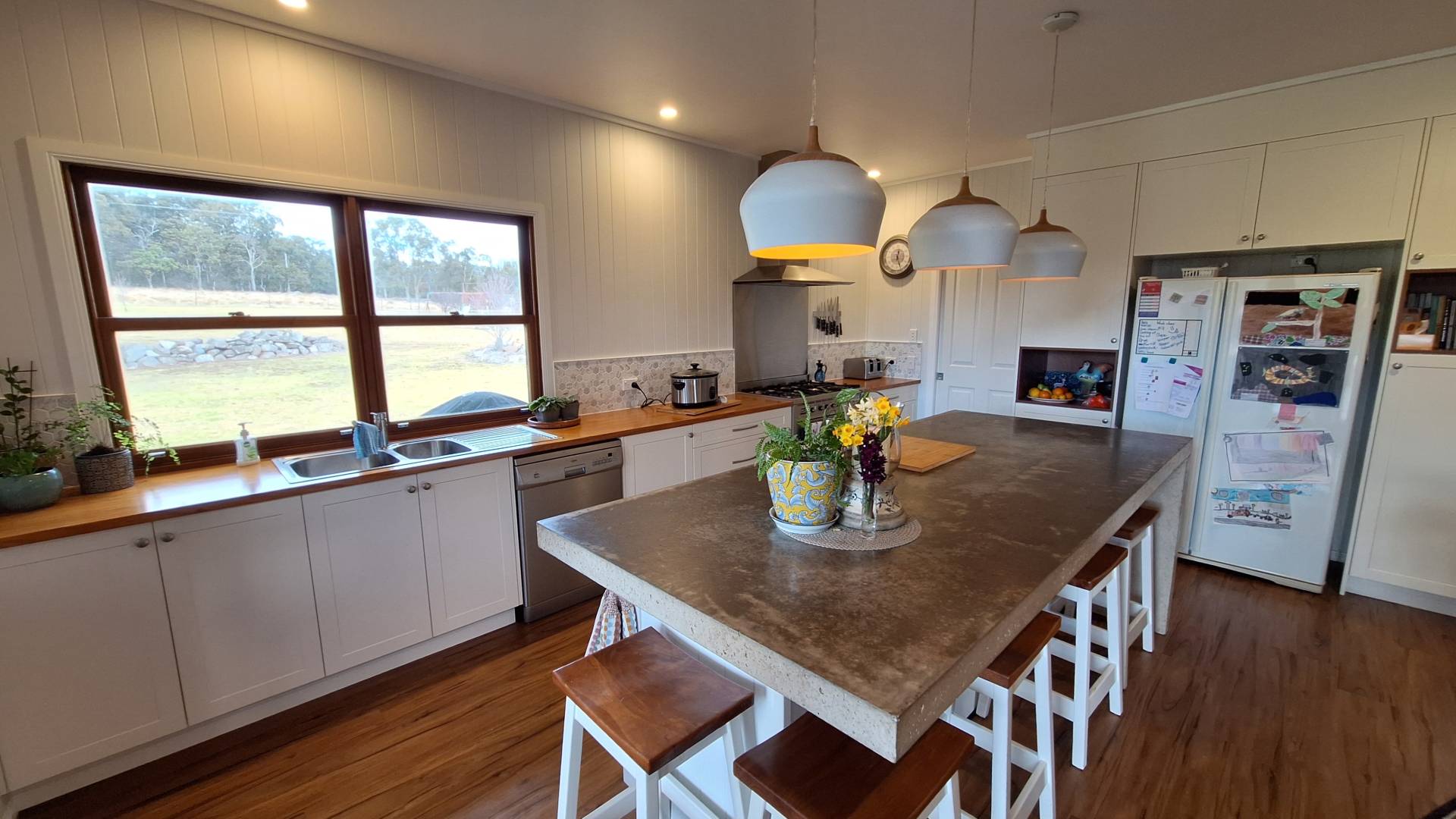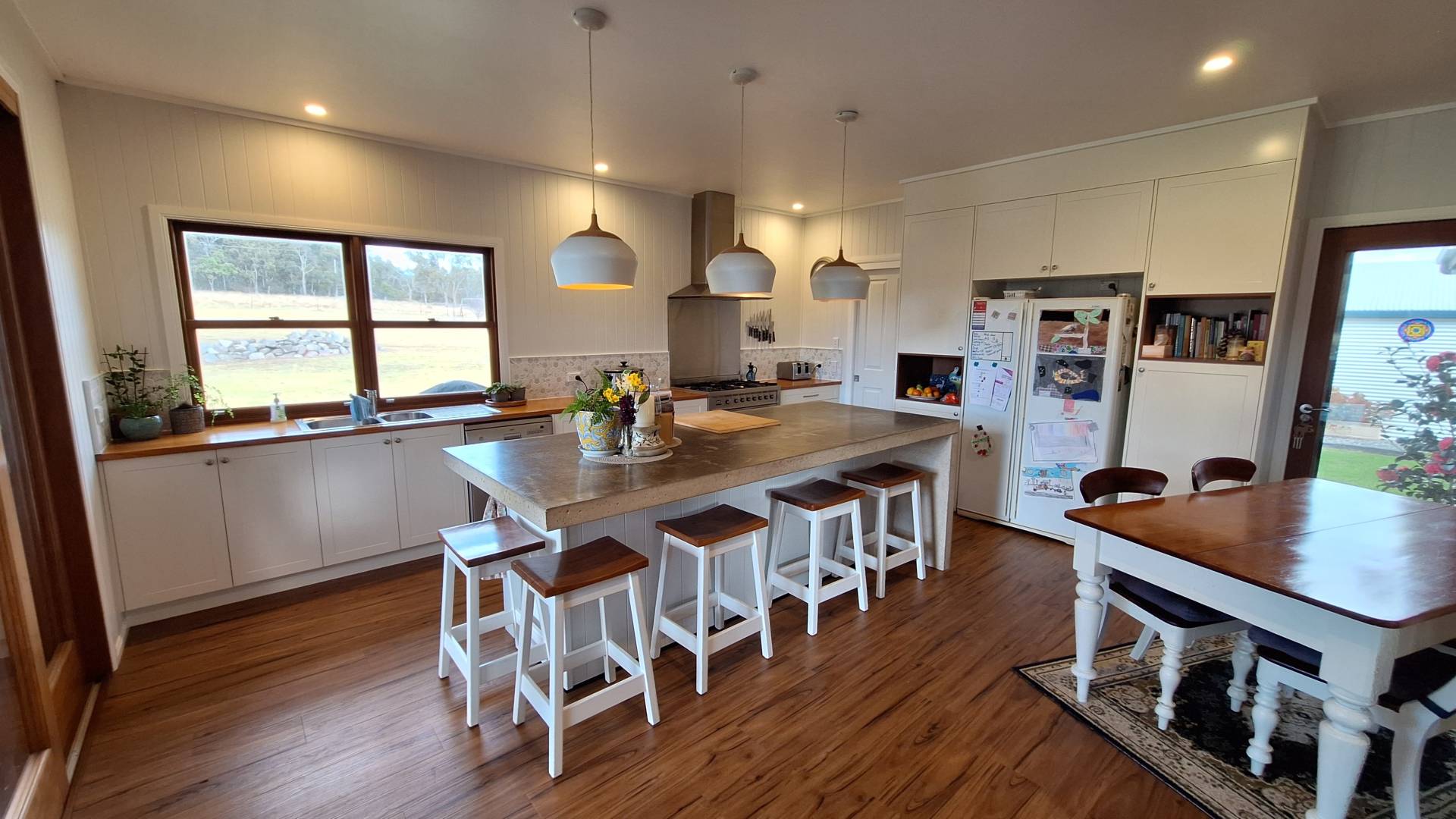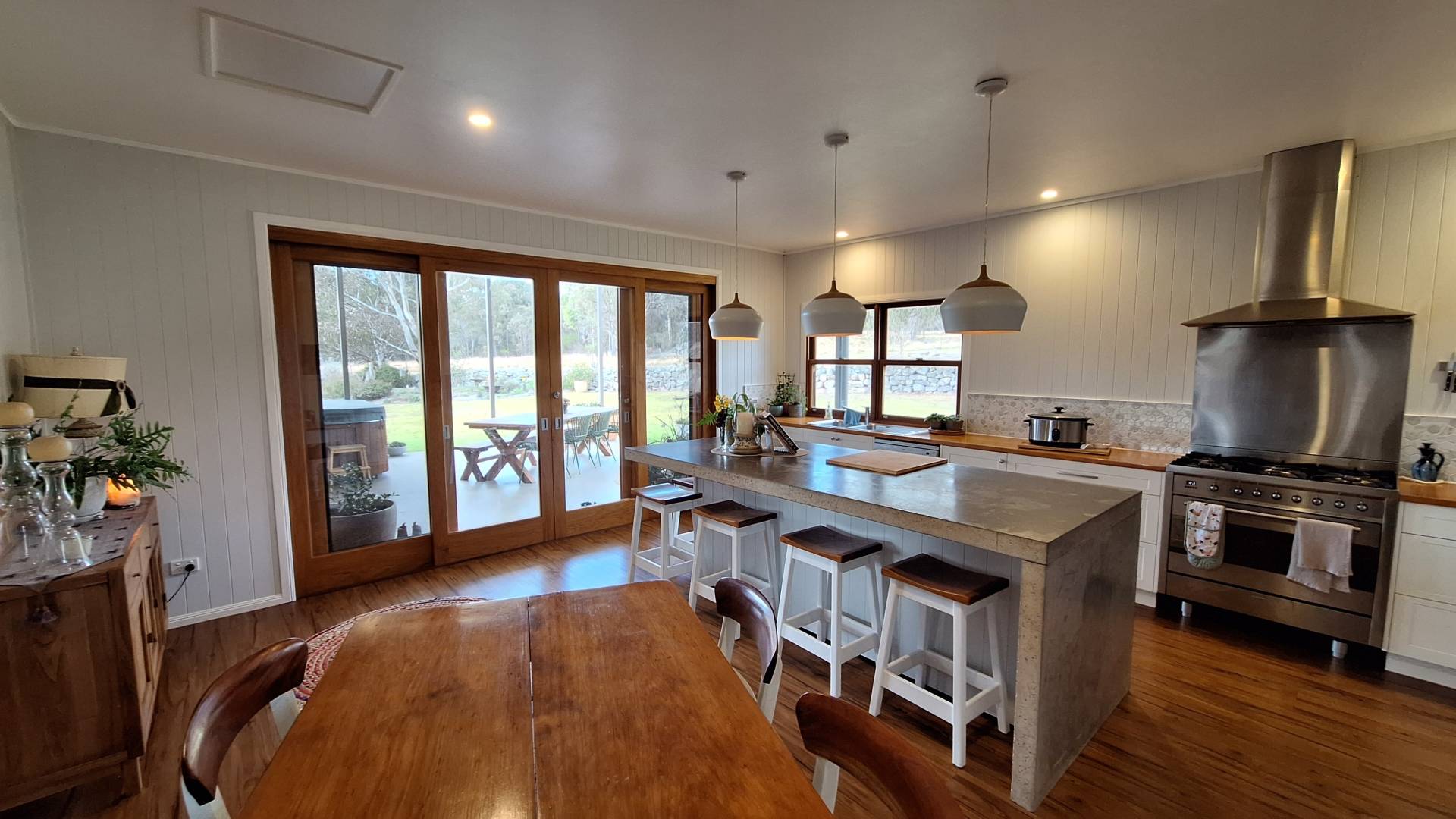 House 1 - 874 Mt Tully Rd. 3 Bedroom home with exceptionally well appointed kitchen featuring stainless steel appliances including a free standing 900mm gas stove, island bench with polished concrete top and waterfall, generous bench and storage space while opening out to a huge covered alfresco area.