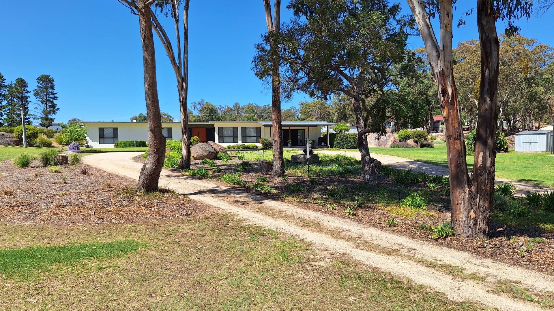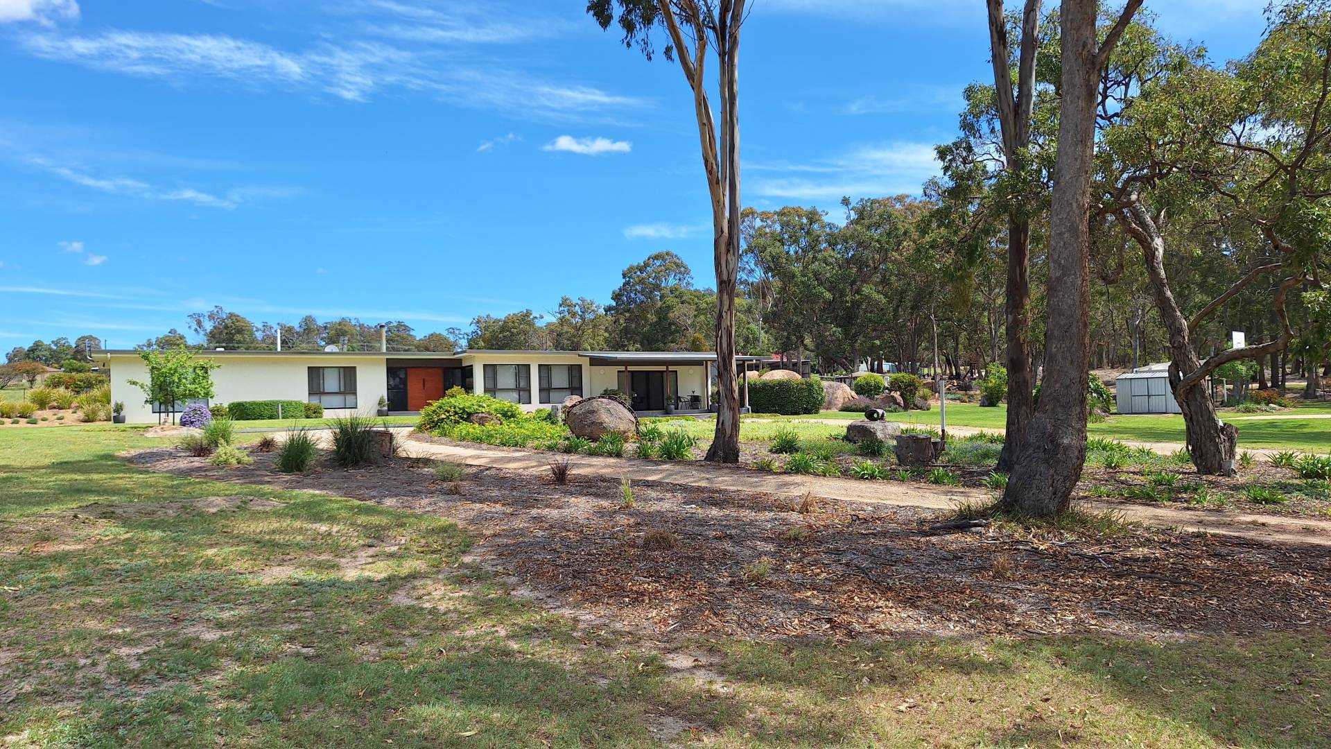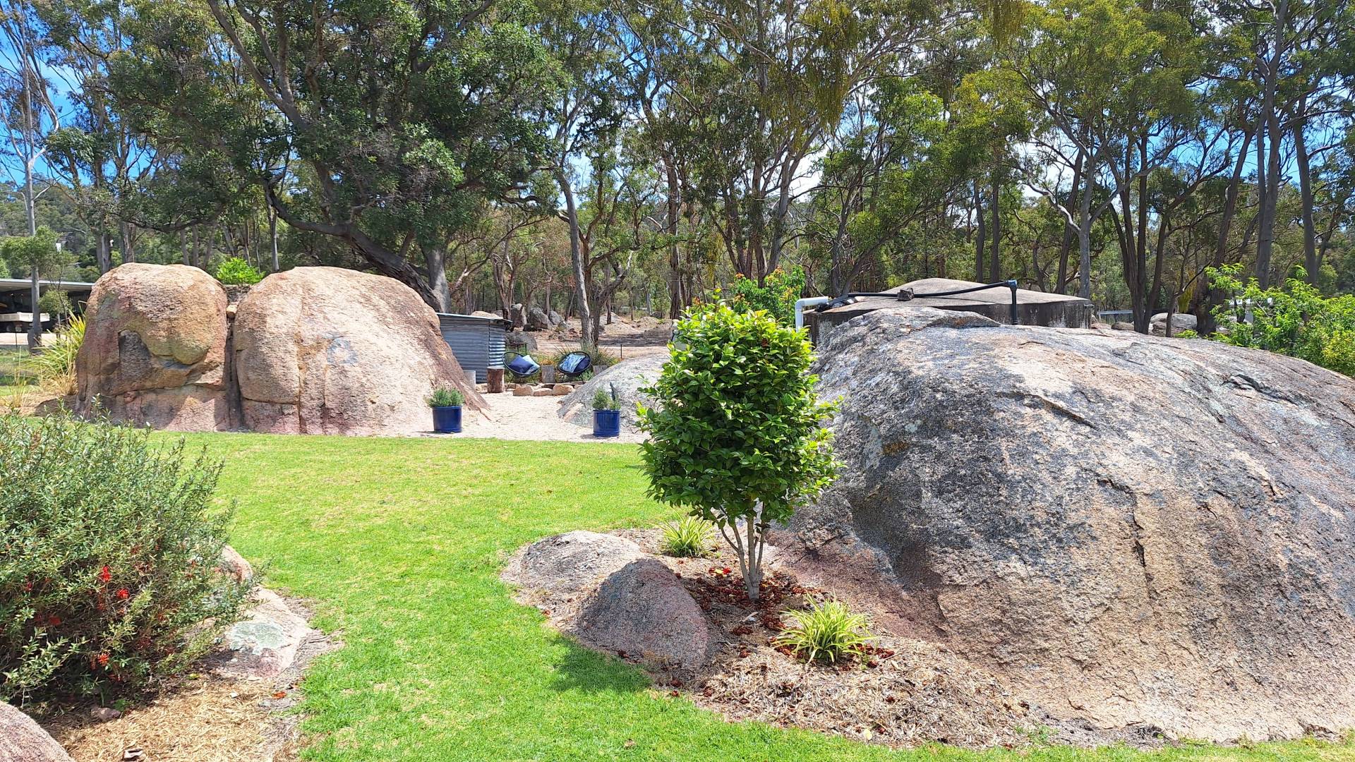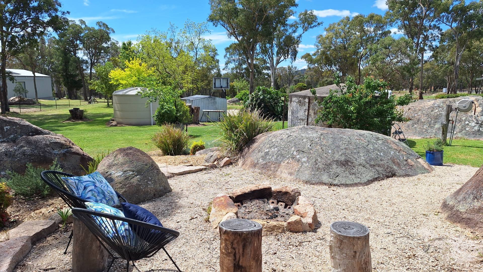 Outdoor living has been a priority for the current family with a fire pit nestled among the granite rock features, heaps of space to chase a ball or the dog around and a 8m x 8m concrete slab laid for Basketball and Netball use but could easily convert to a shed slab.
