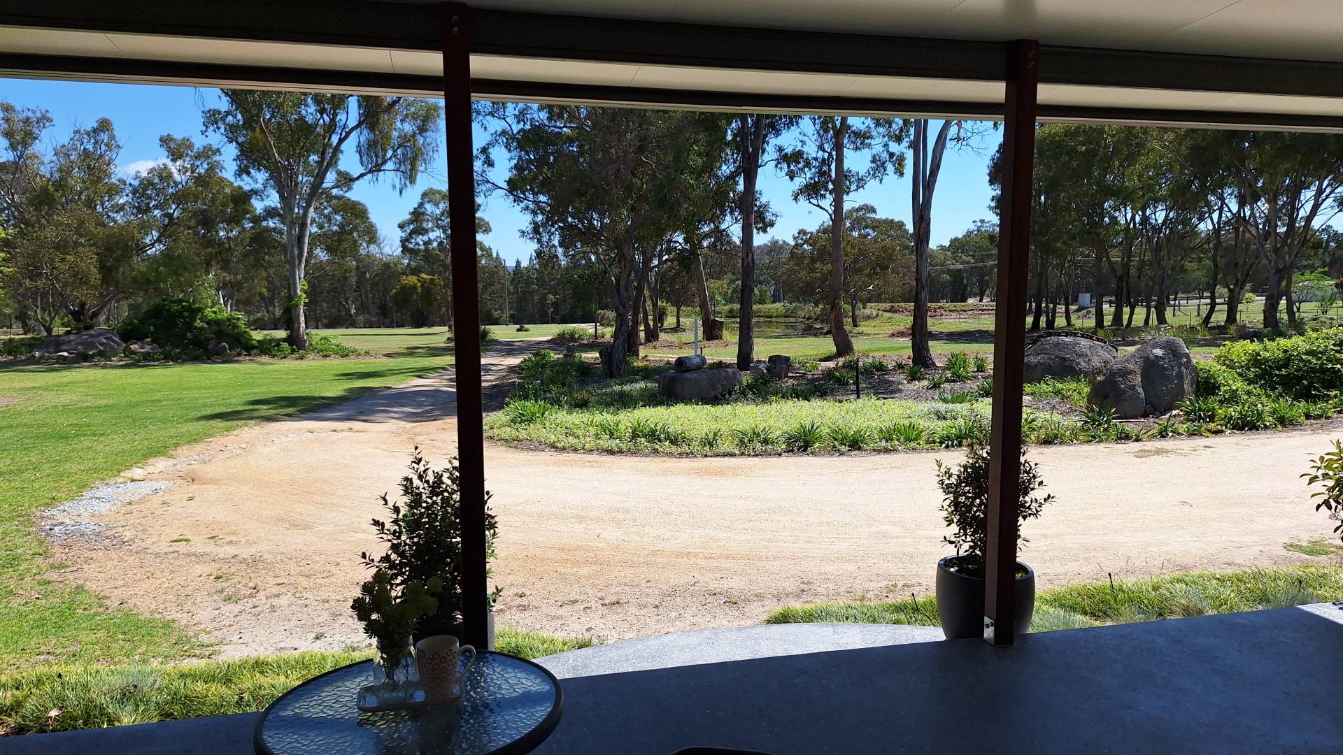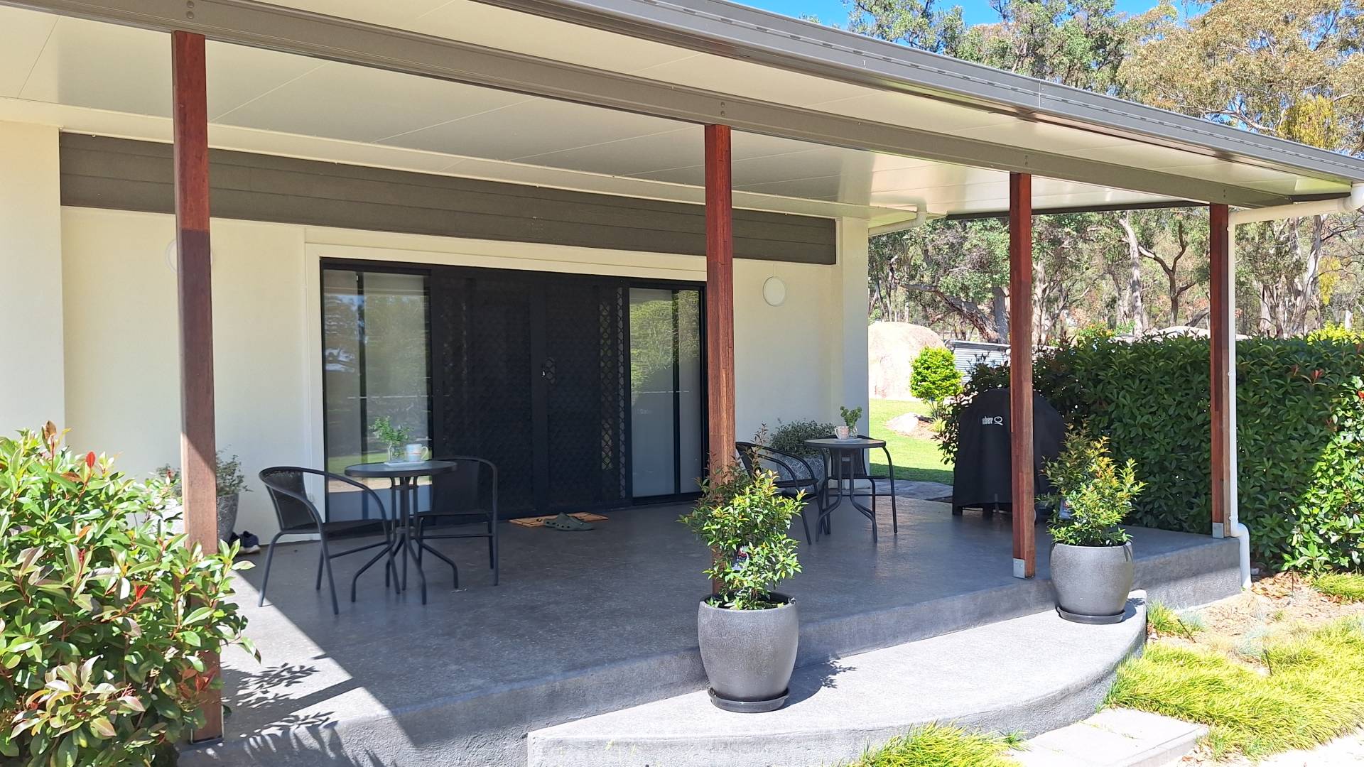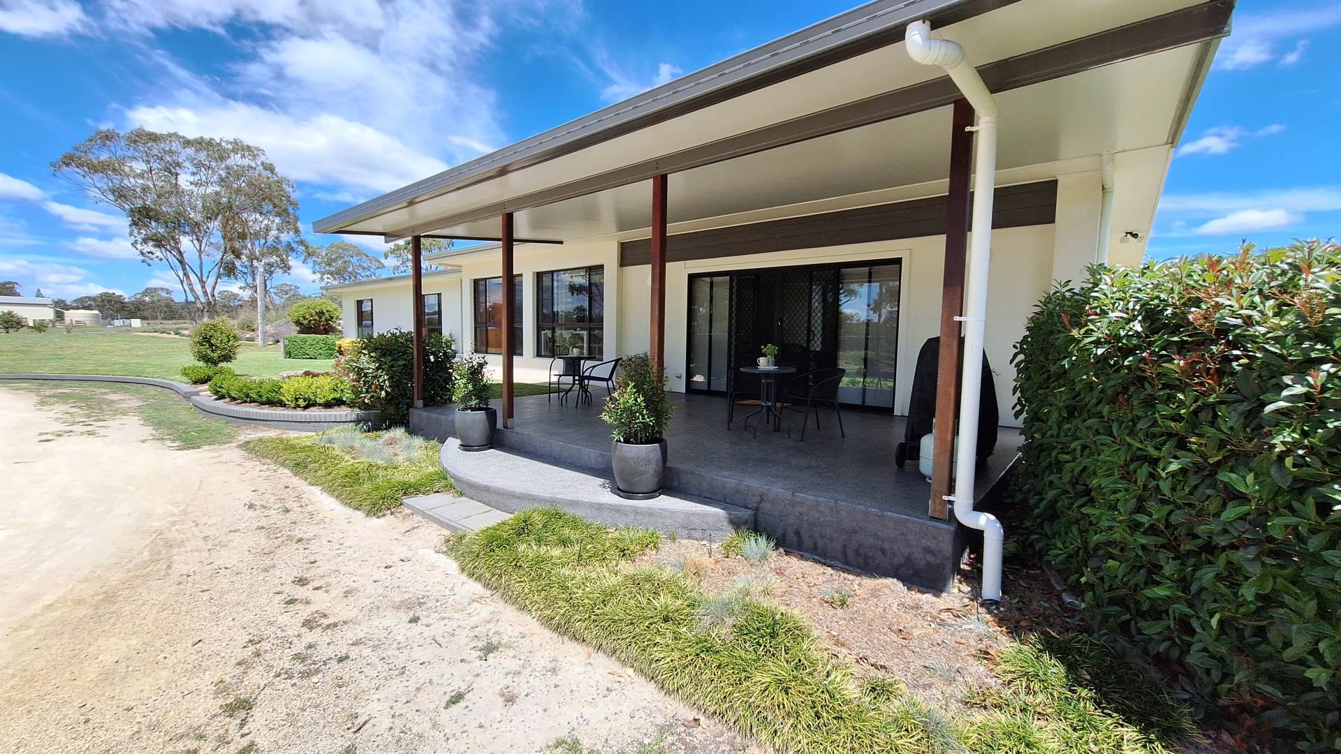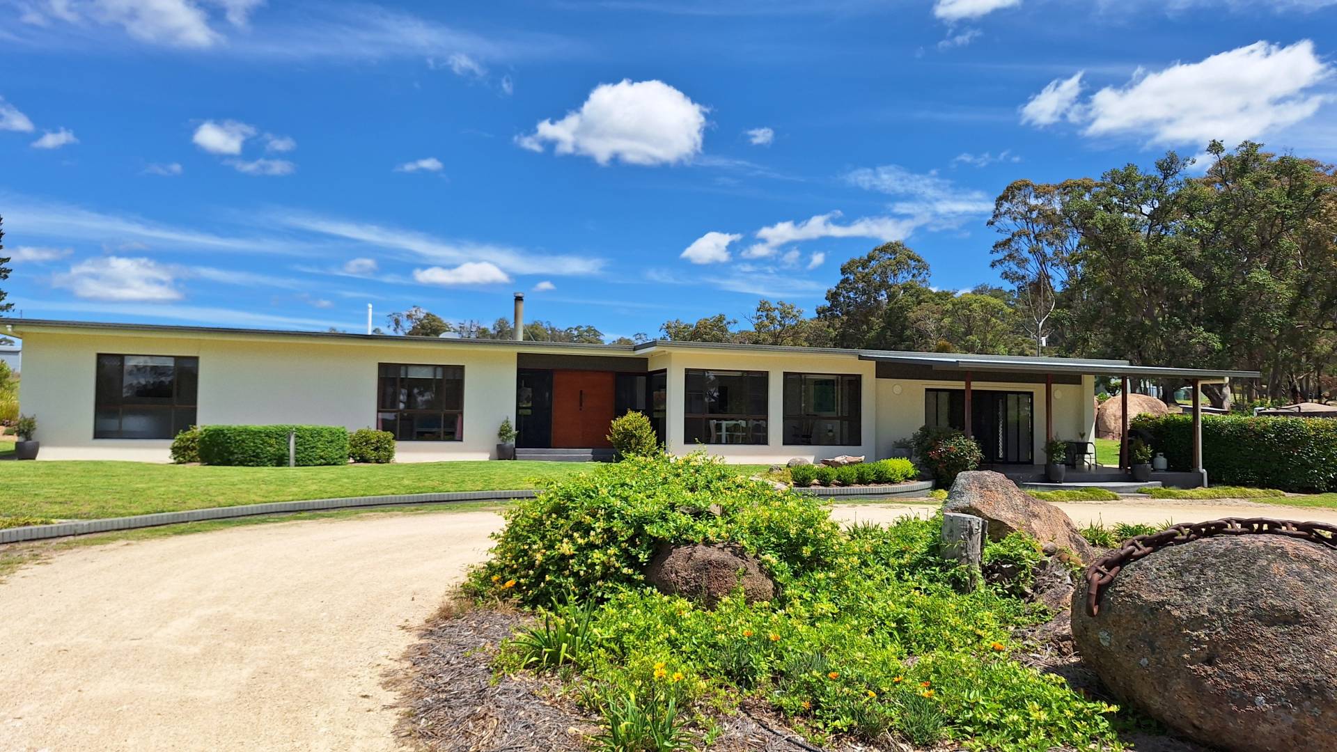 Outdoor living has been a priority for the current family with a fire pit nestled among the granite rock features, heaps of space to chase a ball or the dog around and a 8m x 8m concrete slab laid for Basketball and Netball use but could easily convert to a shed slab.