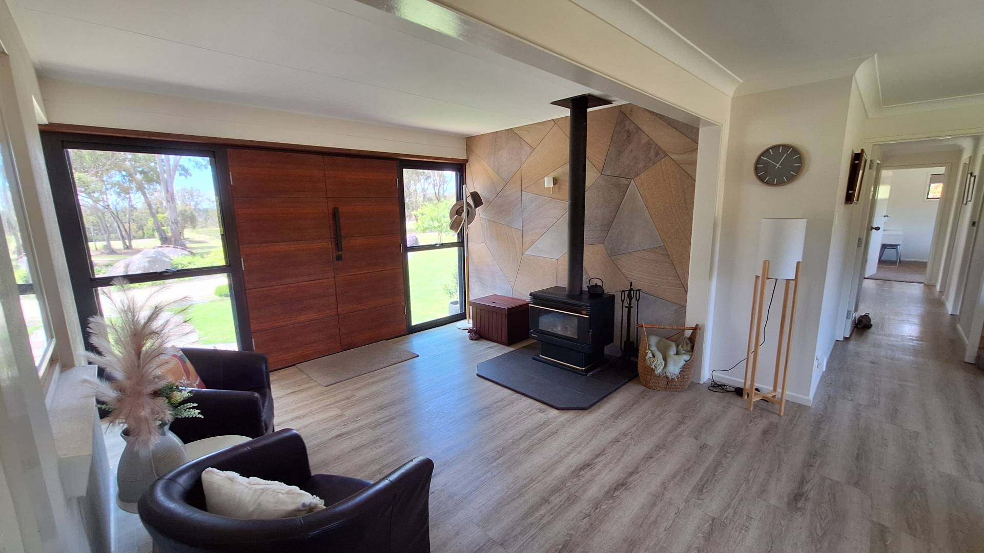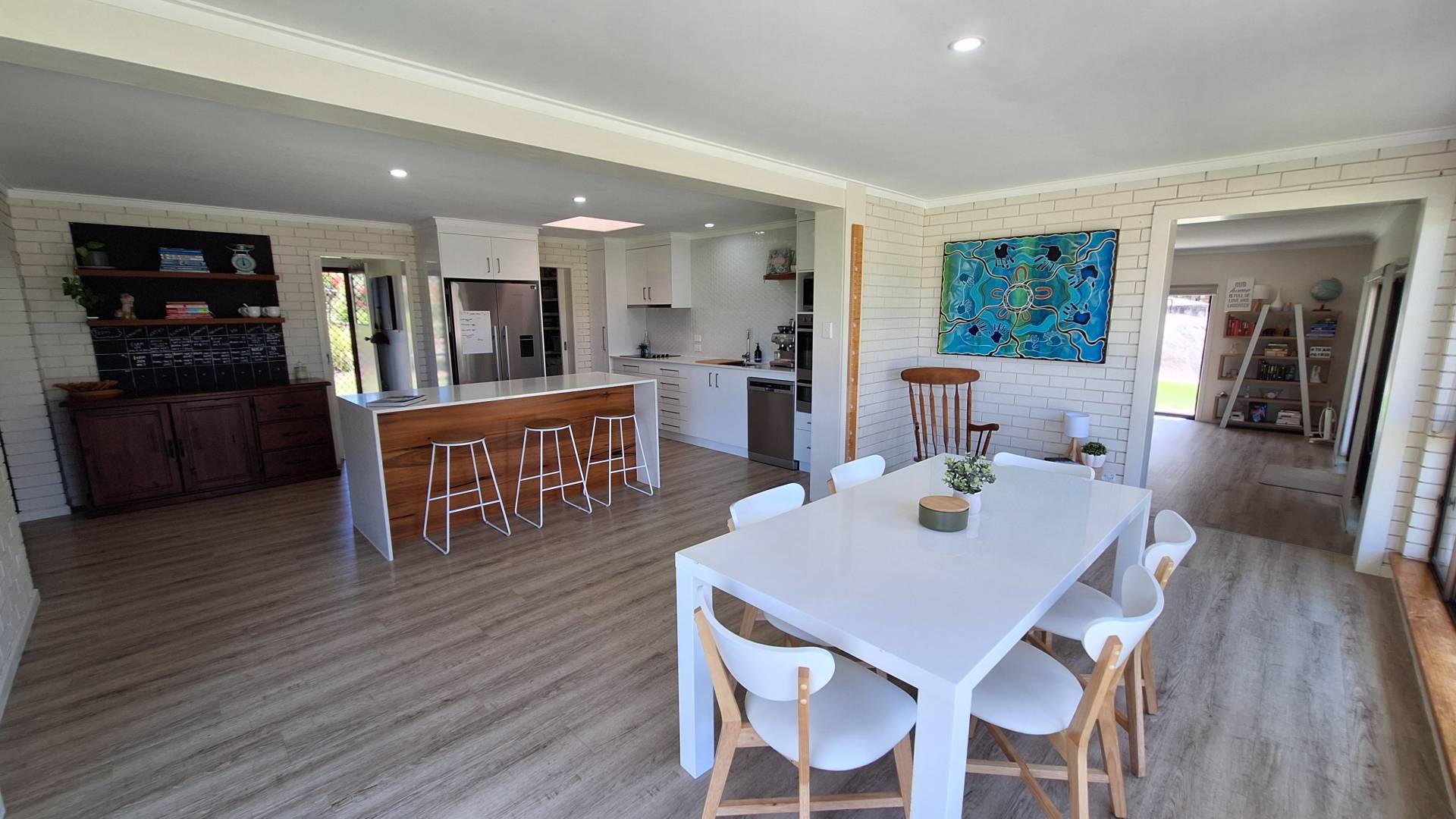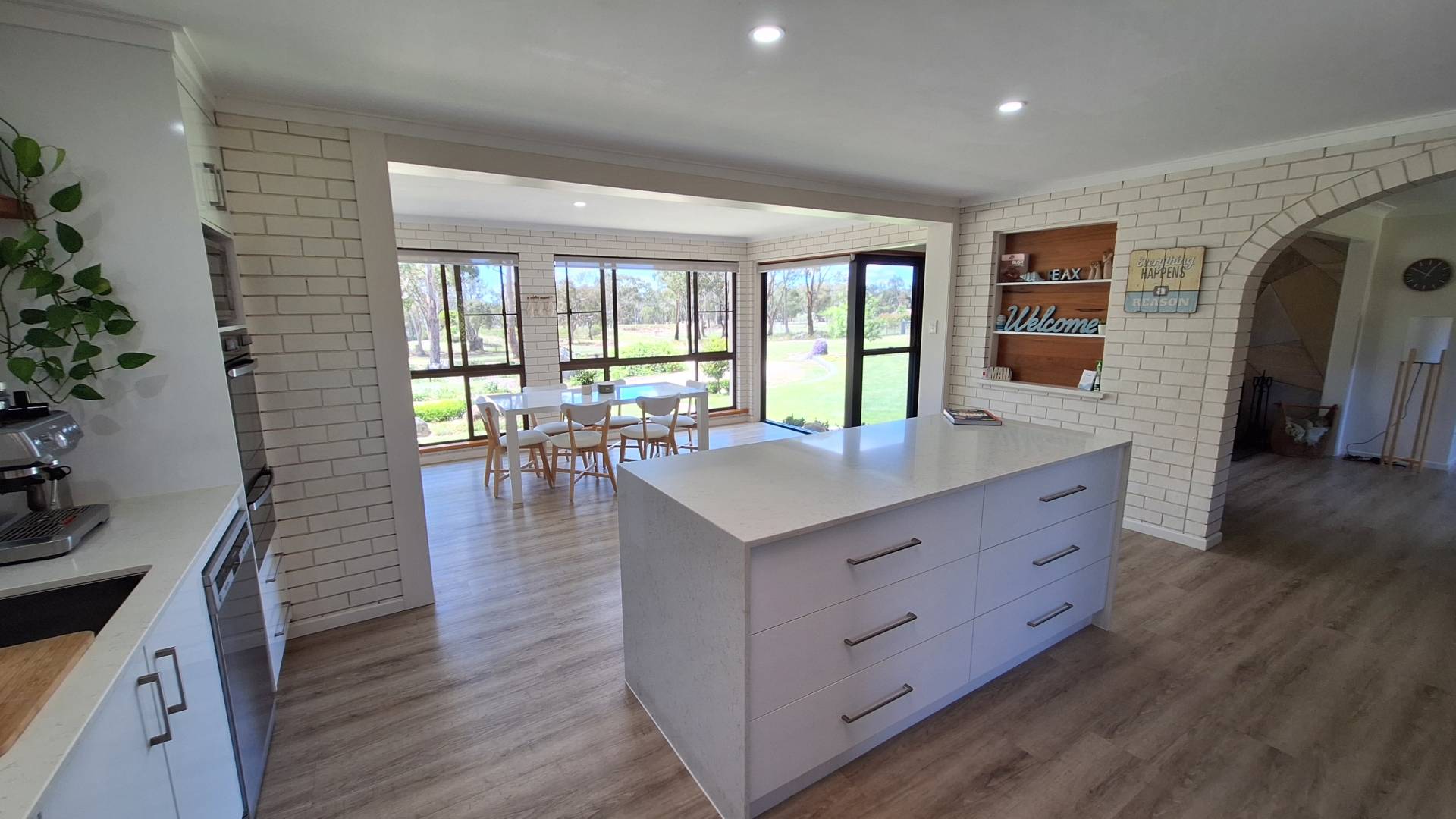 Kitchen has been fully refurbished with generous bench and storage space, hotplate, rangehood, stainless wall oven/grill, island bench and a butlers pantry.