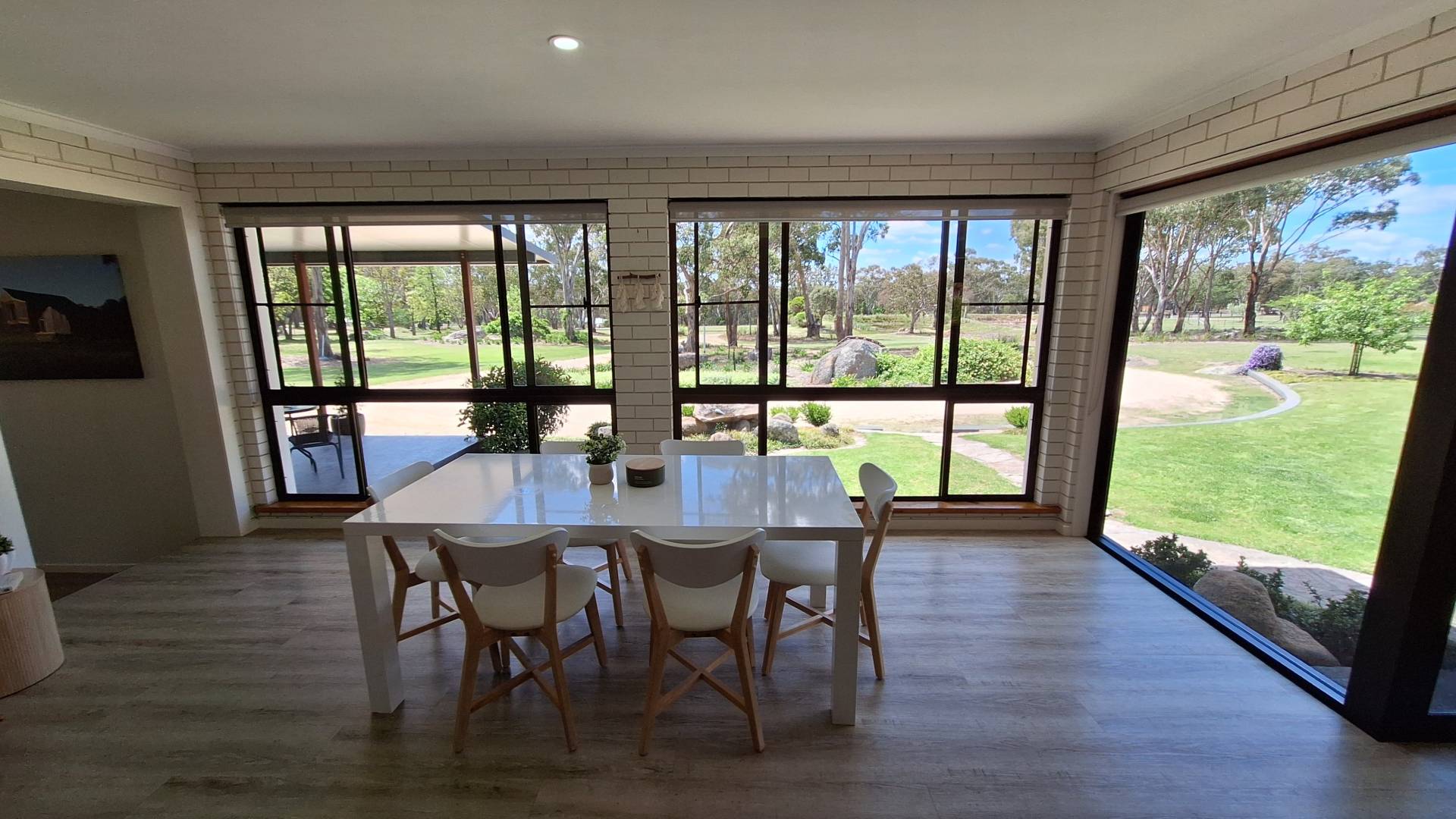 Large open kitchen and dining room, two separate living rooms and ideally positioned with a Northerly aspect to accept the winter sun while overlooking established gardens, highly maintained lawns and a small dam.